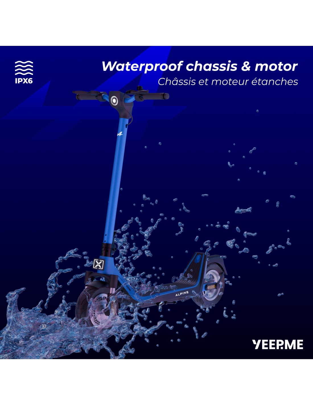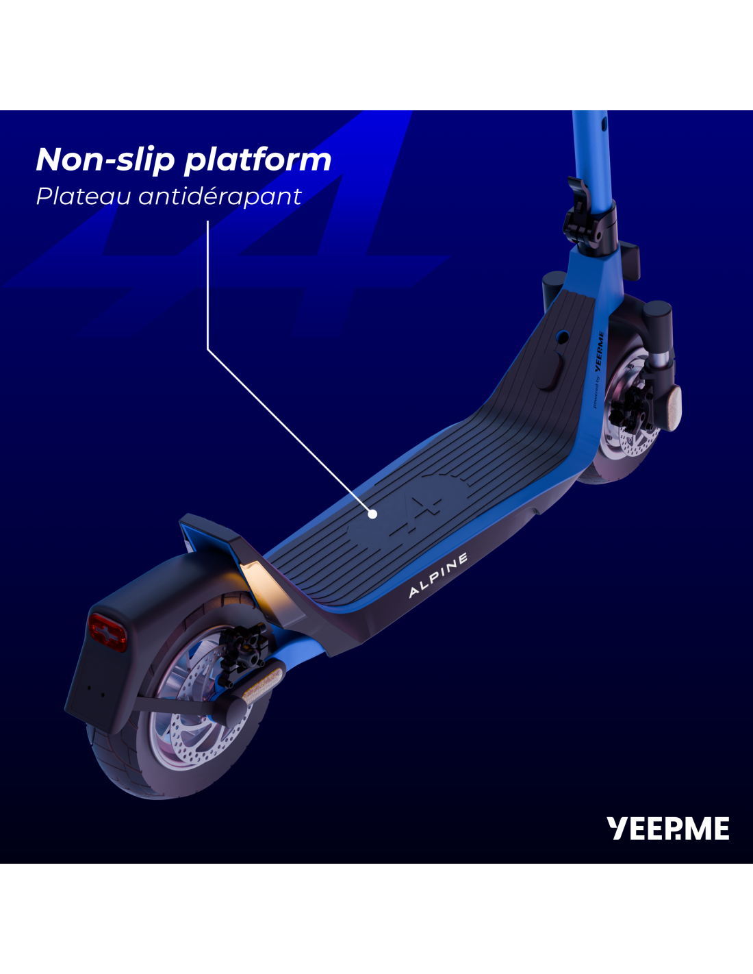 La trottinette ALPINE 100A GT powered by YEEP.ME bénéficie de l’expertise YEEP.ME en matière de développement de produits de mobilité robustes, fiables et performants.