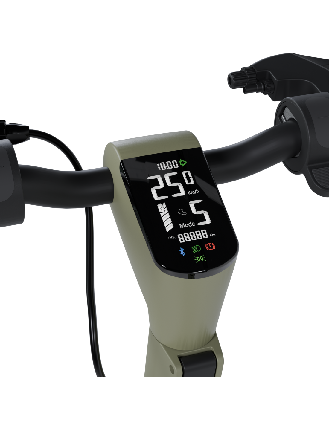 Son écran, nouveau modèle 2025, affiche la vitesse instantanée, la distance parcourue, le niveau de batterie, le mode d’assistance ainsi que l’heure (après synchronisation avec le smartphone et l’application). Elle possède 5 modes d’assistance :