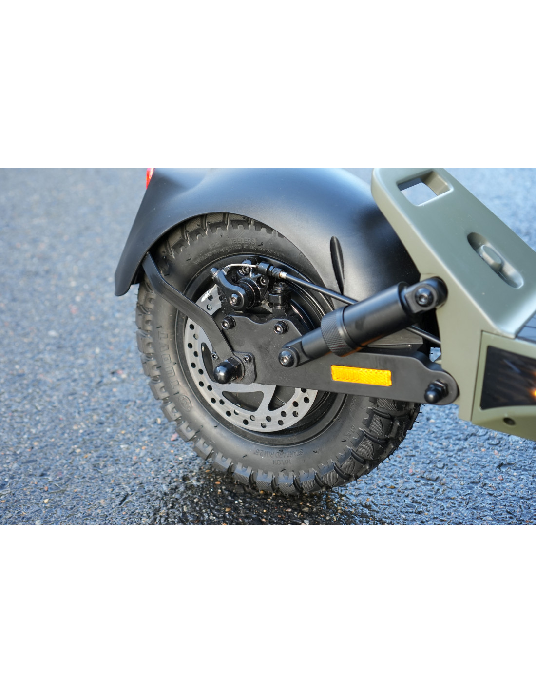 Dotée de pneus 11’’ gonflables Tubeless sans chambre à air, elle possède une bonne adhérence qui vous apportera une excellente précision de conduite avec un très bon confort sur tous types de sols.