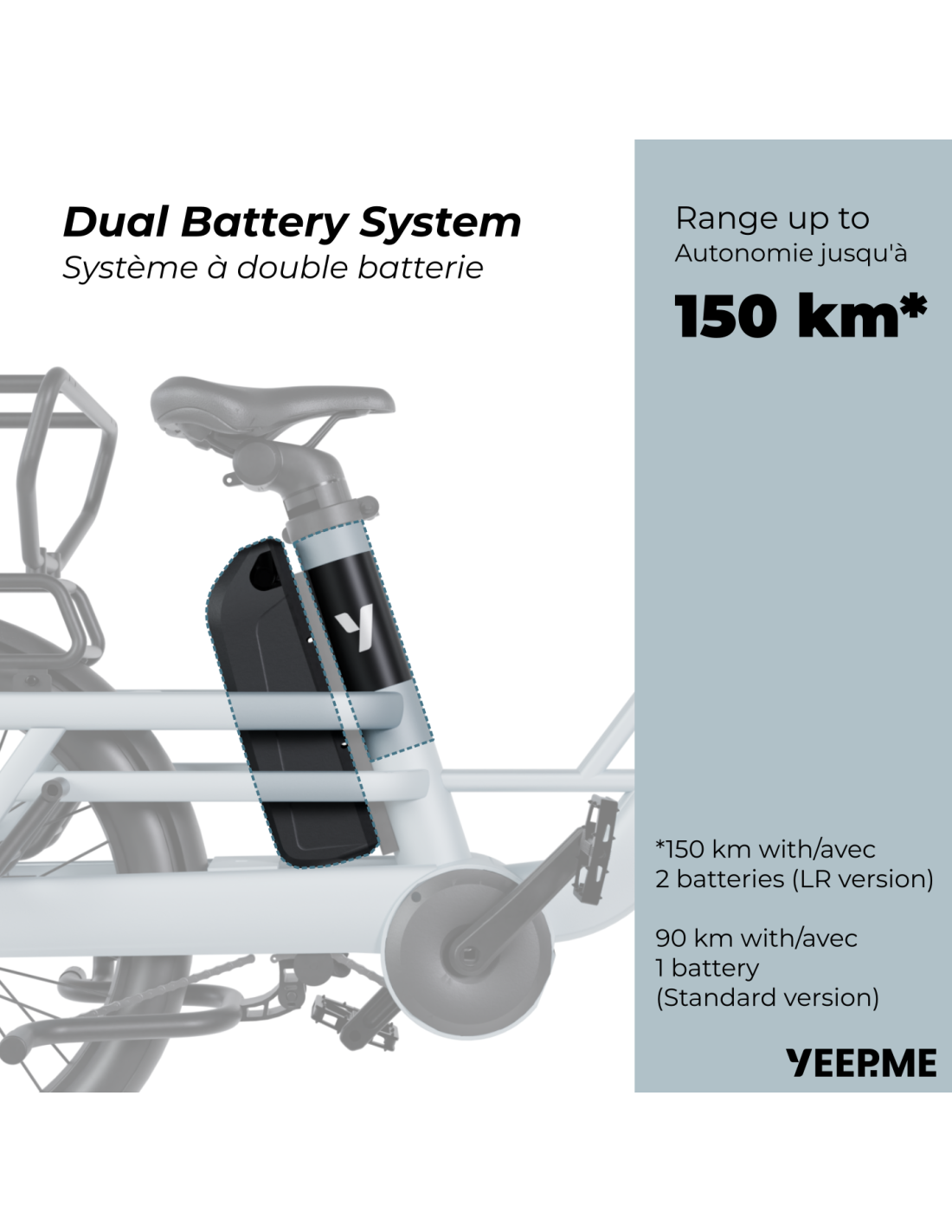+ Grande Autonomie en version LR avec 2 batteries : 1074Wh jusqu'à 150km d'autonomie*