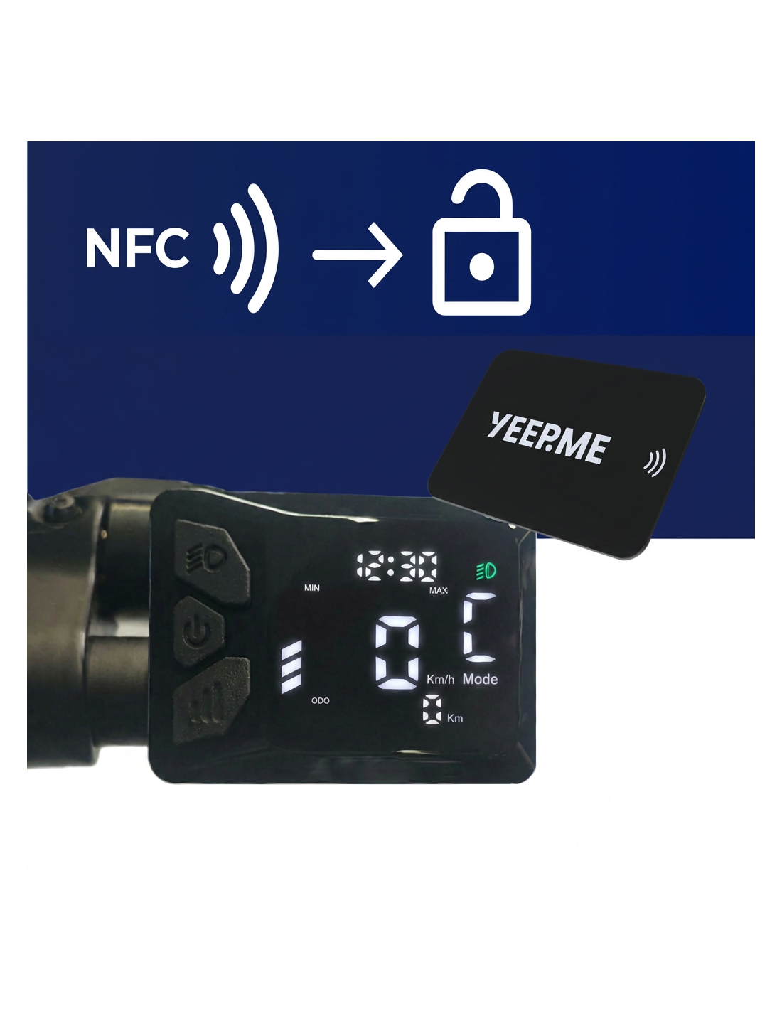 Il est protégé par un verrouillage du système électronique pilotant toute la partie électrique dont le moteur. Pour allumer le système électrique, il suffit d’utiliser le badge NFC (2 badges fournis).